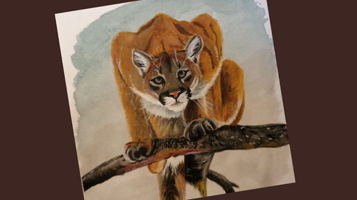 Процесс рисования Пумы акриловыми красками на бумаге.