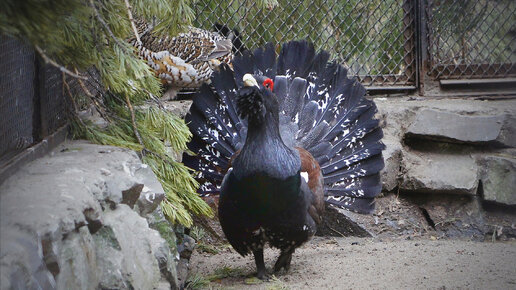 Выступление токующего глухаря перед избранницей.