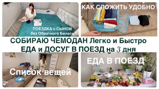 КАК СОБРАТЬ ЧЕМОДАН за час / Список вещей в поездку / ЕДА в ПОЕЗД на 3 дня / ДОСУГ в Поездке