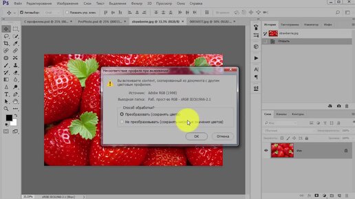 Что делать, если при открытии фотошопа, «вылезает» окно о несовпадении профилей в фотошопе