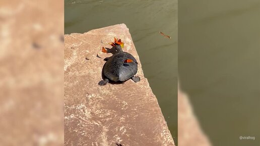 Бабочки пристают к черепахе