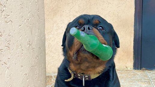 Большой ротвейлер любит играть каждый день