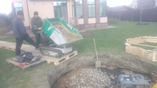 Готовим подушку под фонтан. Используем мини-думпер EXREX500 и тачки.