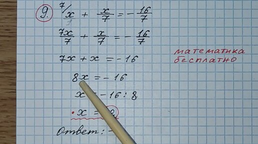9) Решите уравнение х+х/7=-16/7. ОГЭ по математике 2023. Разбор огэ. Решу огэ. Канал Математика бесплатно.