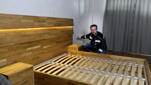 Эта большая КРОВАТЬ с ящиками ДЛЯ ХРАНЕНИЯ и подсветкой, из квази массива дуба...