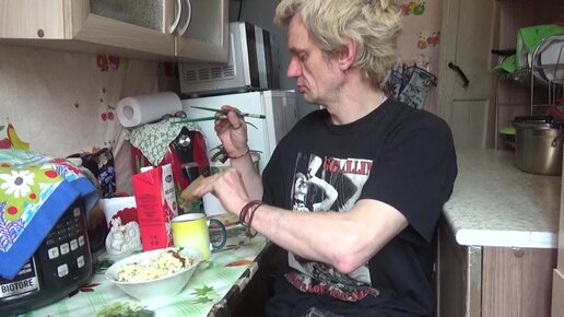 обжор мукбанг салат мясной хлеб бародинский и чай