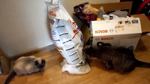 Котики прогрызли пакет с кормом