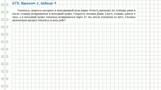 Задание 9. ЕГЭ 2023. Задача на движение по воде. Теплоход, скорость которого в неподвижной воде