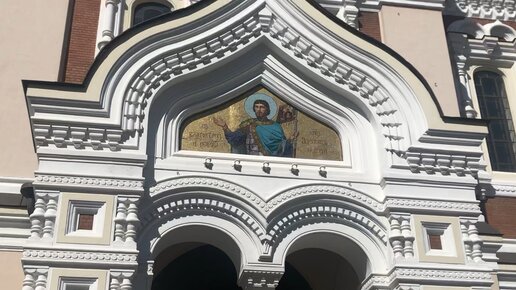 EstELN. Собор св Александра Невского в Таллинне, главный вход и мозаики Сергия Радонежского и Александра Невского