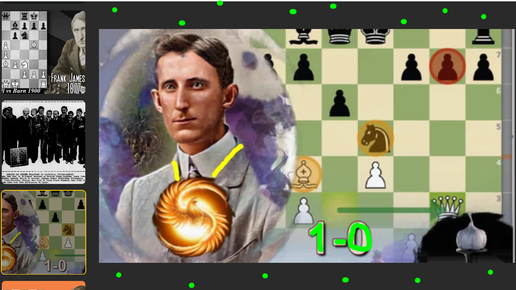 Фрэнк Маршалл белыми сражается против Гезы мароци в Нью-Йорке, 1926, играя ферзевый гамбит. 50 ходов Мароци держался, затем сдался, 1-0