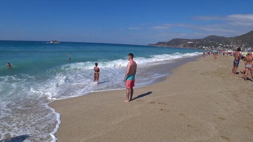 Пляж в Алании. Цвет воды необыкновенный. Отдых в Турции.
