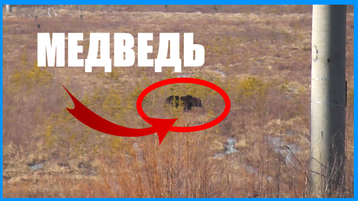 КРУПНЫЙ МЕДВЕДЬ НА БОЛОТЕ ЕСТ КЛЮКВУ.