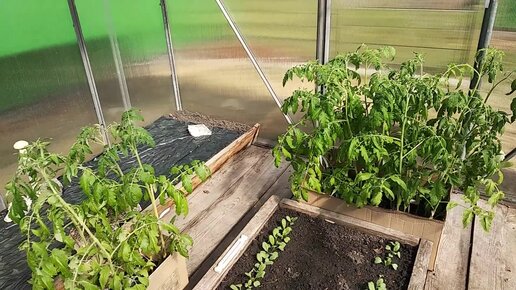 Перевезла рассаду томатов на дачу. Прогреваю грядки в теплице. Весенний уход за первоцветами