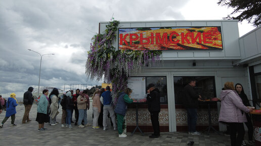Легендарные алуштинские чебуреки на набережной, за которыми очередь в любое время года. Показываю цены и как готовят.
