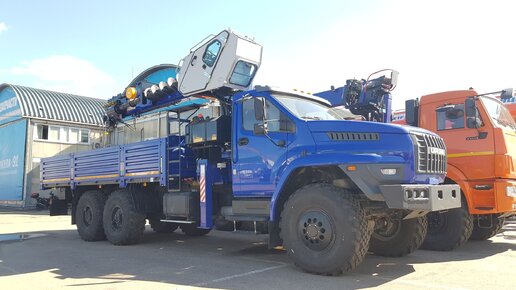 УРАЛ NEXT с КМУ DY SS1966, буровым оборудованием и складной кабиной оператора КМУ.