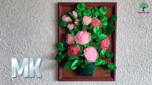 Красивые объёмные 3д картины на стену своими руками Розы из органзы 3D подарок\Master diy