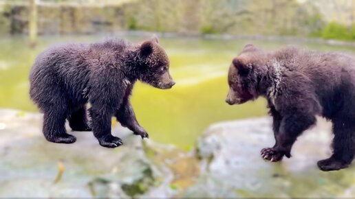 Медвежата переехали в вольер к папе и там СХОДЯТ С УМА!