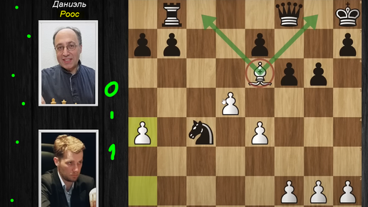 Эффектно экс-чемпион мира (по версии ФИДЕ) А. Халифман раздавил своими белыми слонами защиту Грюнфельда мастера Д. Рооса в Европе, 1995, 1-0
