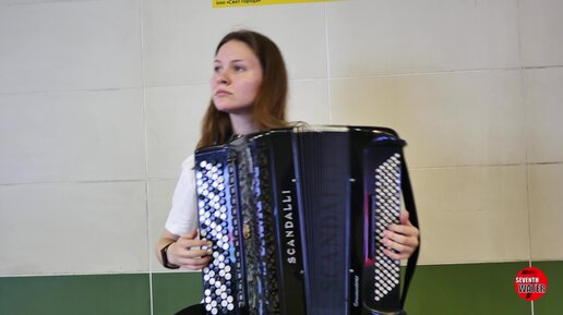 Неожиданно остановился послушать красивую уличную гармонистку! Шел в переходе, но заслушался талантливой игрой приятной уличной музыкантши.