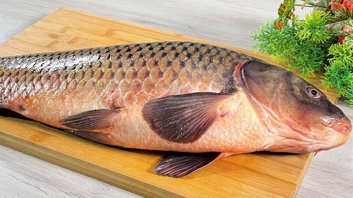 Сазан, запечённый с лимоном на луковой подушке, вместе с картофелем гарниром, настоящий кулинарный шедевр для подачи на праздничный стол.