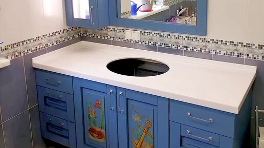 Коллекция "Морская". Ручная роспись мебели для ванной комнаты. Мастерская Ульяны Земляники.