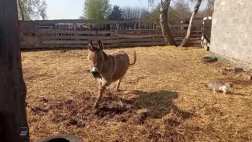 Скачки ослицы по лесу, встреча с табуном лошадей/ Простые радости ослика