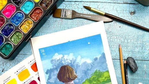 Рисуем девушку с книгой в смешанной технике! Акварель + гуашь! 3 урок марафона _Краски лета_.