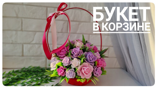 Сборка букета из мыльных роз в корзине