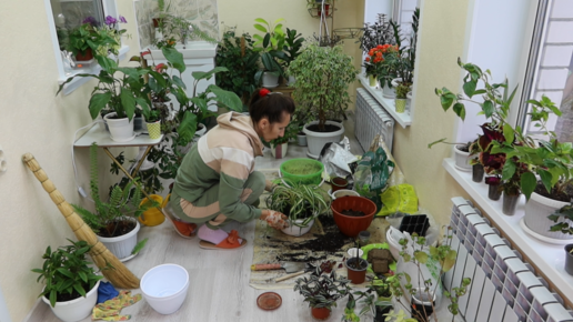 Пересаживаю традесканции и другие ампельные растения (хлорофитум, пеперомия) в зимнем саду!