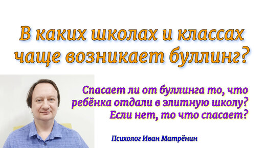 В каких школах и классах чаще возникает буллинг? Спасает ли от буллинга то, что ребёнка отдали в элитную школу? Если нет, то что спасает?