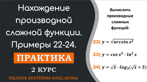Нахождение производной сложной функции. Примеры 22-24.