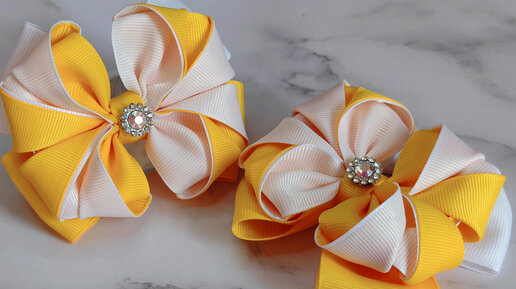Яркий бантик на весну и лето из репсовых лент 4 см