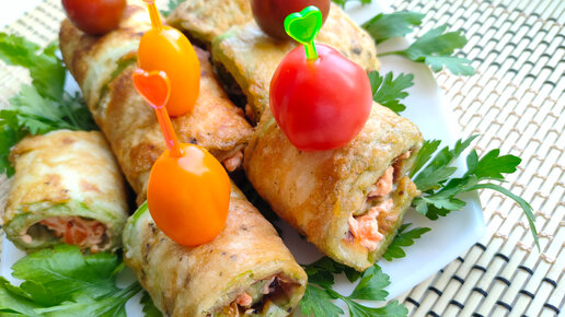 Рулетики из кабачков на праздничный стол! Рецепт вкусных жареных кабачков с начинкой.