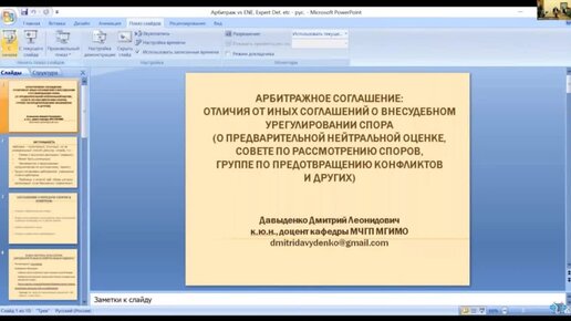 Досудебное урегулирование правовых конфликтов. Д.Л. Давыденко (к.ю.н., доцент кафедры МЧГП МГИМО)