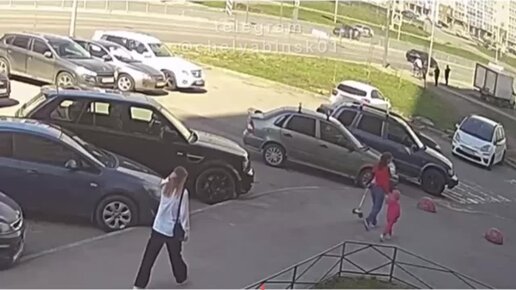 Иномарка вылетела на тротуар с пешеходами (Челябинск, 3.05.2023)
