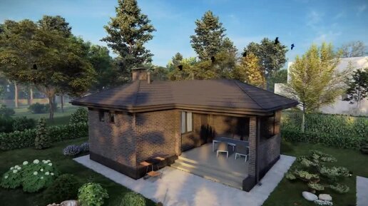 Проект бани 39 м2 из газобетона с террасой - П209