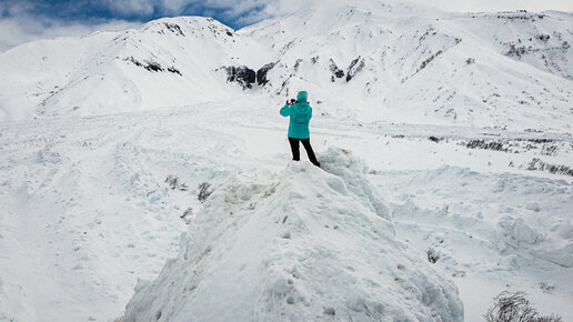 После схода лавины в районе Вилючинского вулкана, Камчатка.