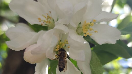 Пчелы опыляют яблоню. Напоминаю о том, как от вредителей избавиться и подкрормить деревья для хорошего урожая