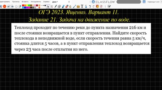 Движение по воде. ОГЭ 2023. Ященко. Вариант 11. Задание 21. Текстовая задача.