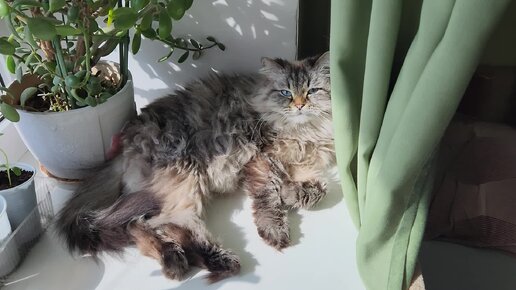 "Мама, не мешай загорать!" - пушистая Милка очень любит прогреть свою шерстку на солнышке.
