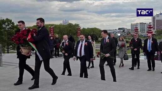 Кадры возложения цветов к стеле "Минск — город-герой"