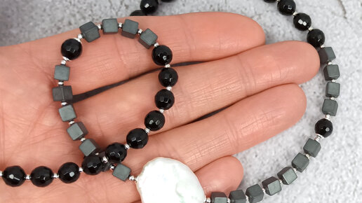 Собираем модный чокер с бусинами гематита, черного агата и барочным жемчугом. Ссылка на набор материалов под видео