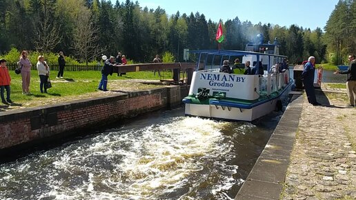 Теплоход уходит из шлюза в Домбровке. Августовский канал. Беларусь ( А здесь как он заходит в шлюз: https://dzen.ru/video/watch/646a1617817f5452ad837711)