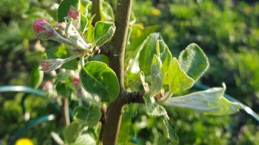 Вечерняя прогулка птичьего дворика🤗. Яблонька наконец-то зацвела.