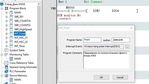 03_2 Программирование ПЛК INovance H3U. Прерывания. Прерывания по фронту высокоскоростного входа