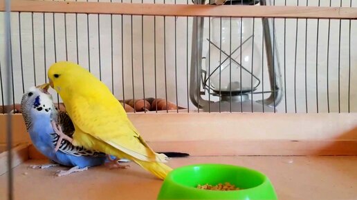 Волнистые попугаи готовятся к размножению.Установил гнездовой домик.