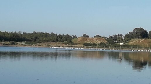 Озеро, где обитают розовые фламинго в центре города Фамагуста Северного Кипра притягивает к себе и детей и взрослых. Наслаждаются красотой.