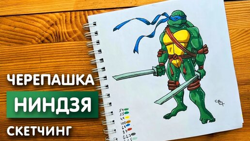 Как нарисовать "Черепашку ниндзя" карандашом и скетч маркерами | Рисунок поэтапно и легко