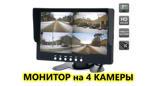 Автомобильный монитор сквадратором (на 4 камеры)