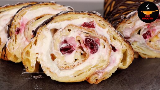 Готовлю рулет из обычного блинного теста, но если тесто запечь в духовке - оно получается заварным (нежный сливочный десерт с ягодами)